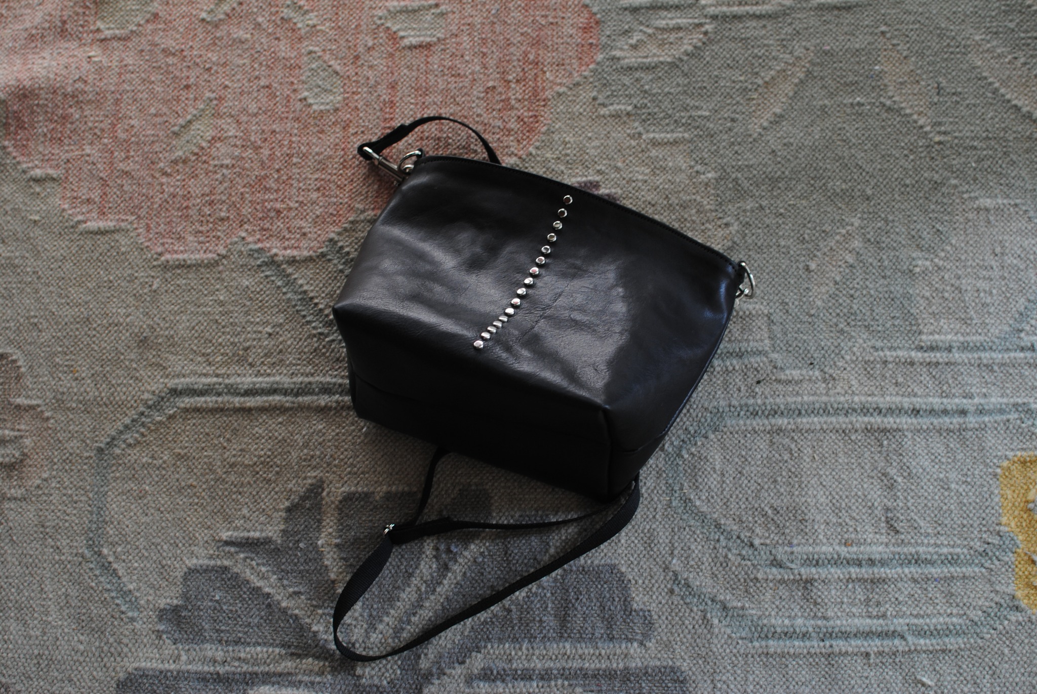 スタッズとレザーの組み合わせ。シンプルなデザインに、シンプルなスタッズのアクセント。