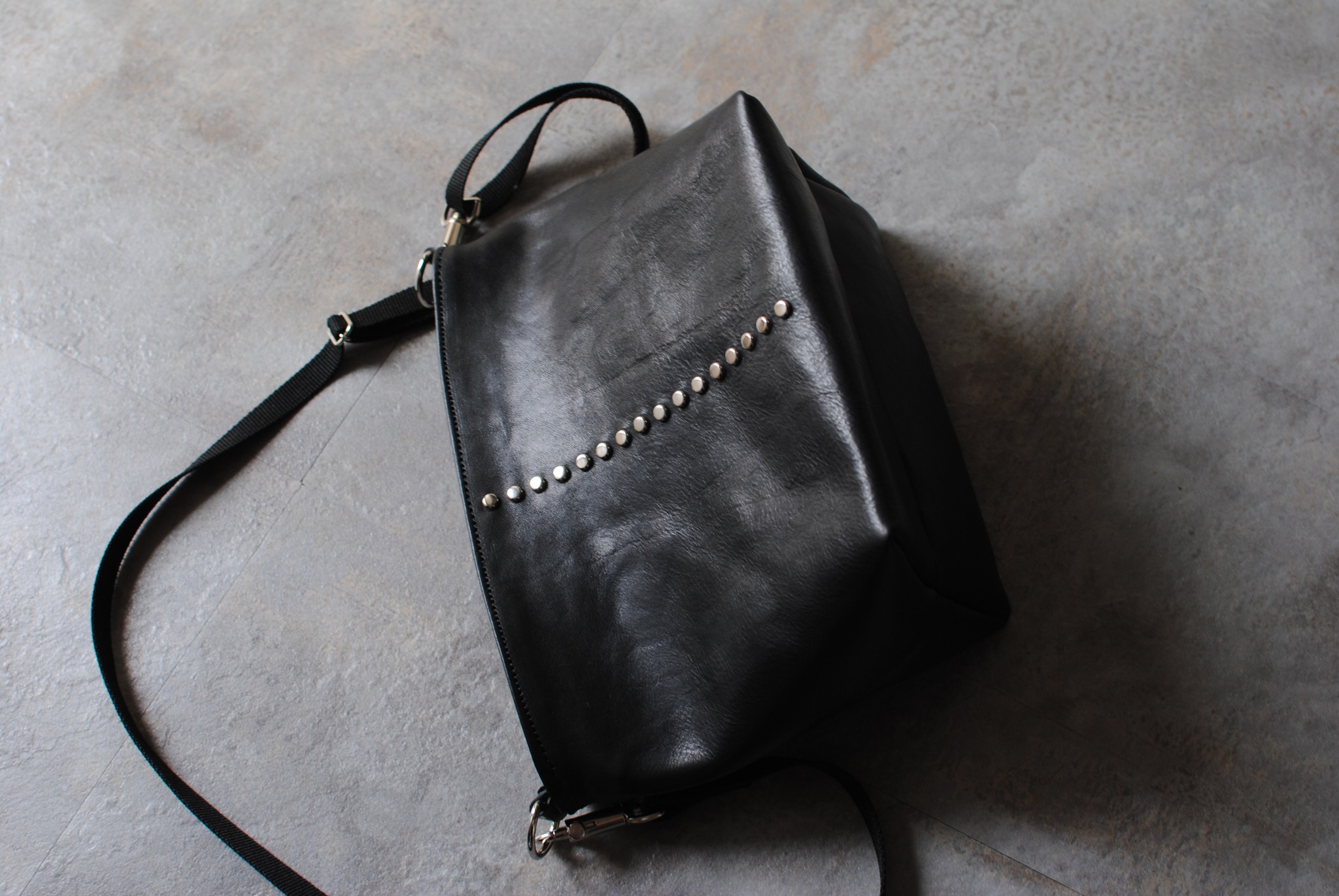 そして出来上がったのがスタッズを縦に一連配置した黒いレザーバッグのシリーズです。